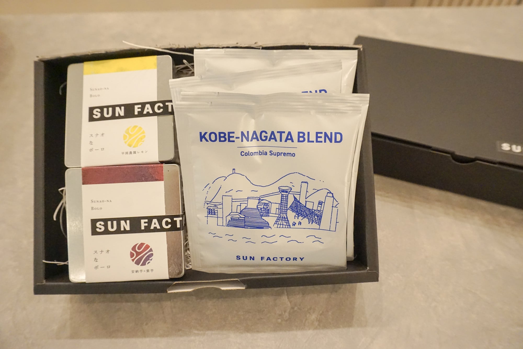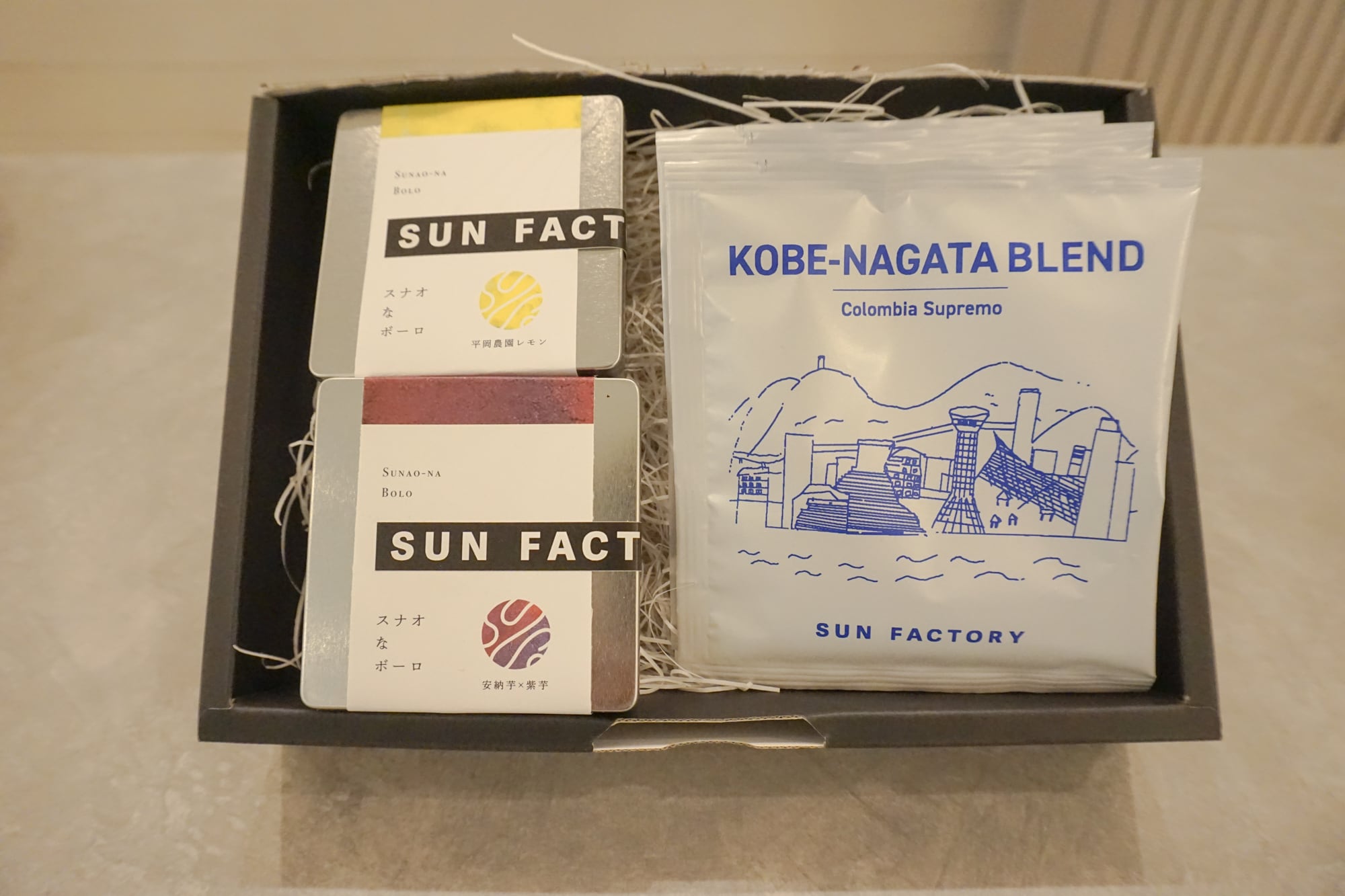 兵庫県産米粉使用のグルテンフリーボーロ缶とドリップバッグコーヒーのセットです。