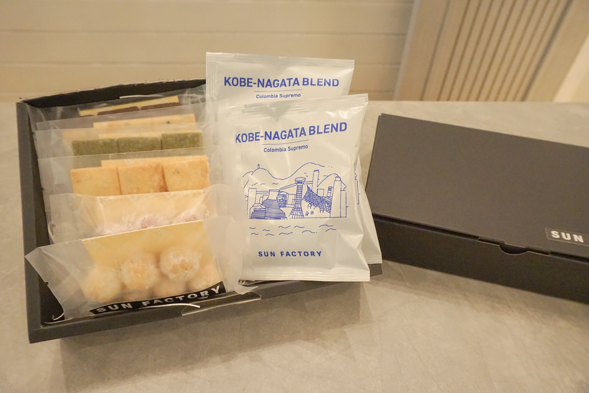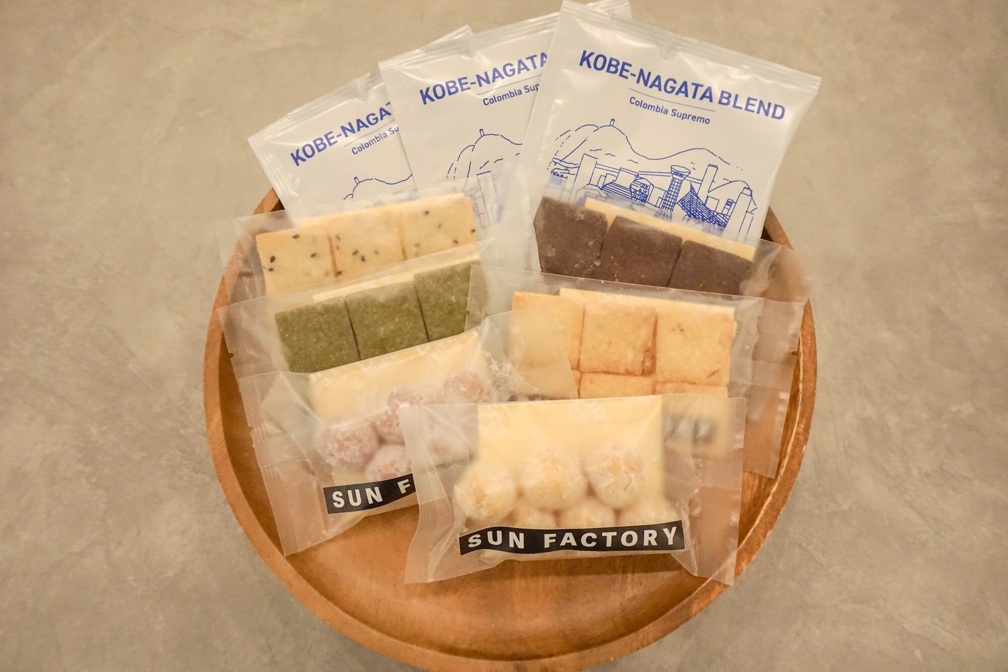 兵庫県産米粉使用のグルテンフリーサブレ、ボーロとドリップバッグコーヒーのセットです。