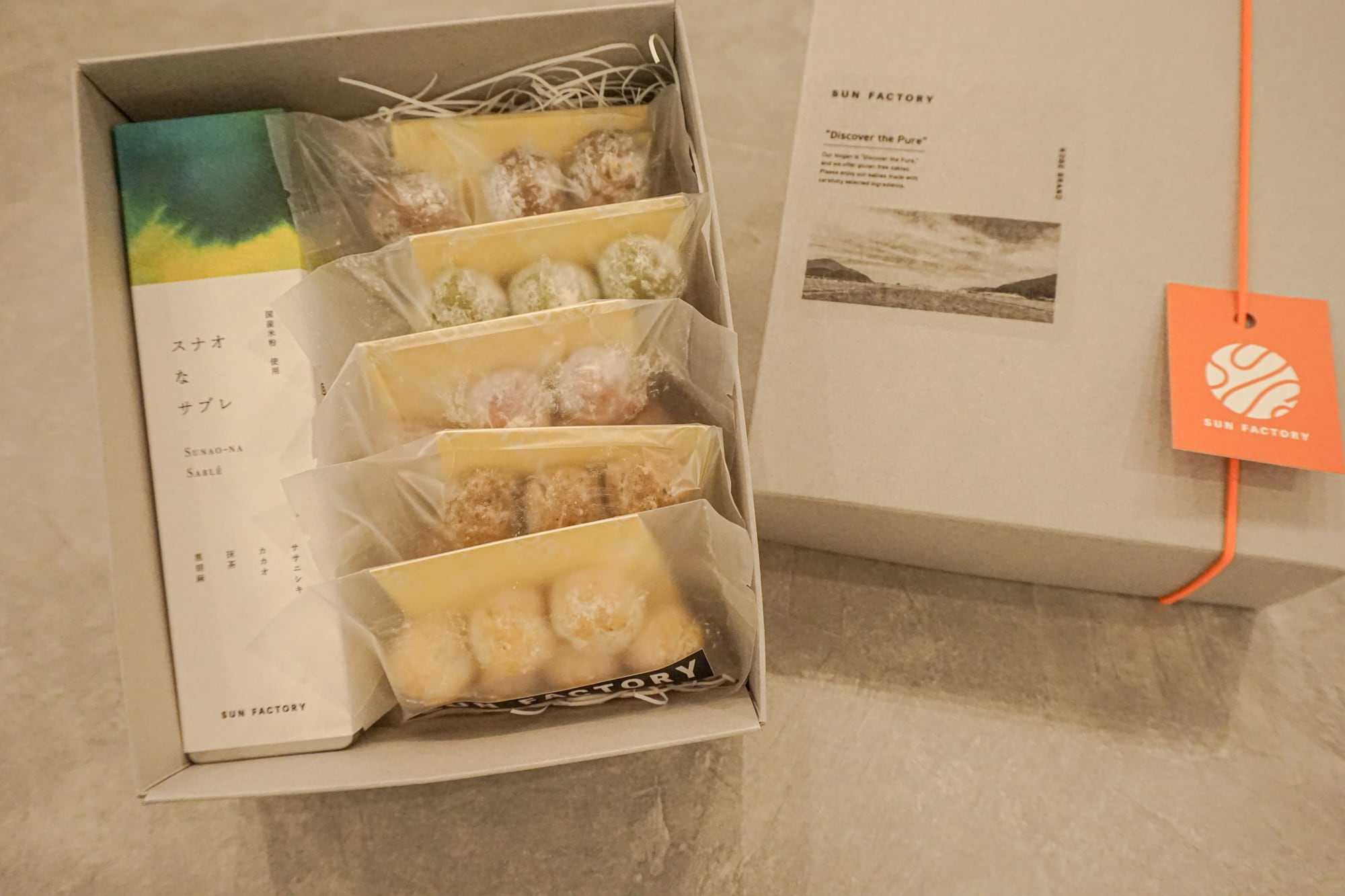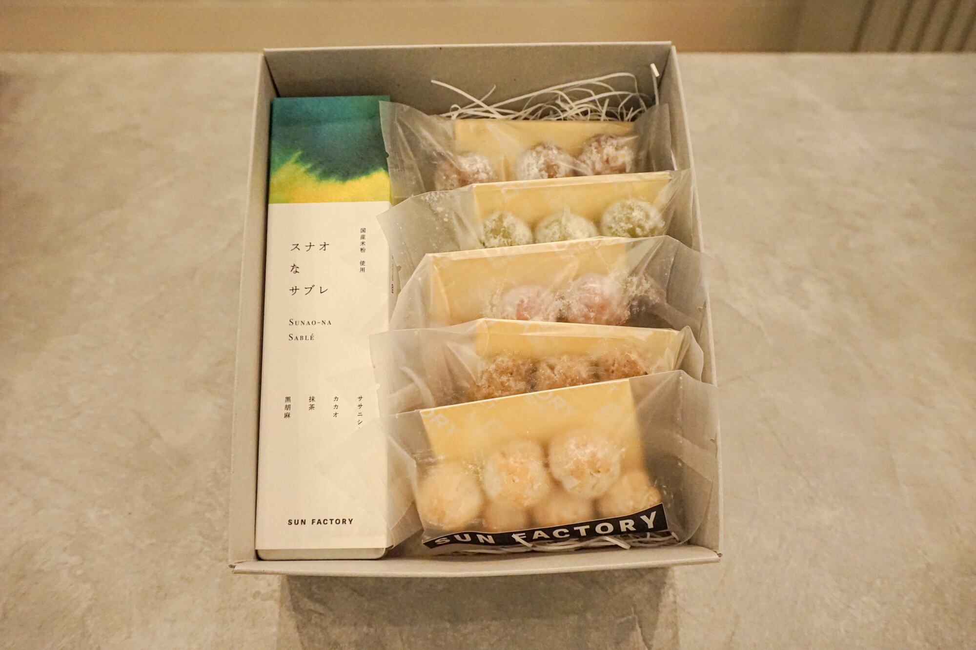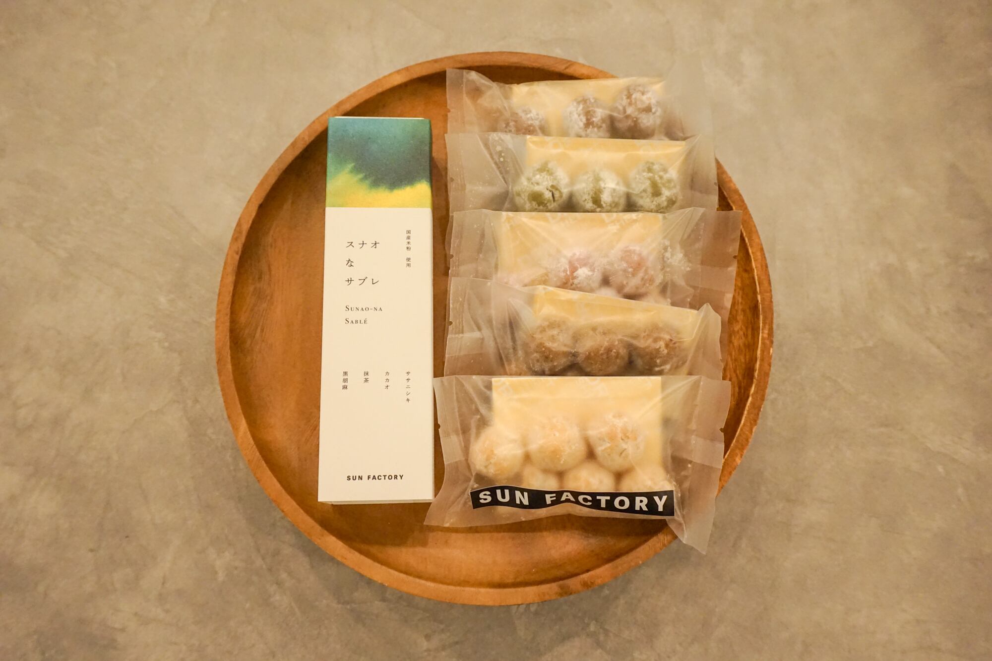 スナオなボーロは、コーヒー、抹茶、安納芋×紫芋、平岡農園レモン、ショコラ・カレットの5種があります。